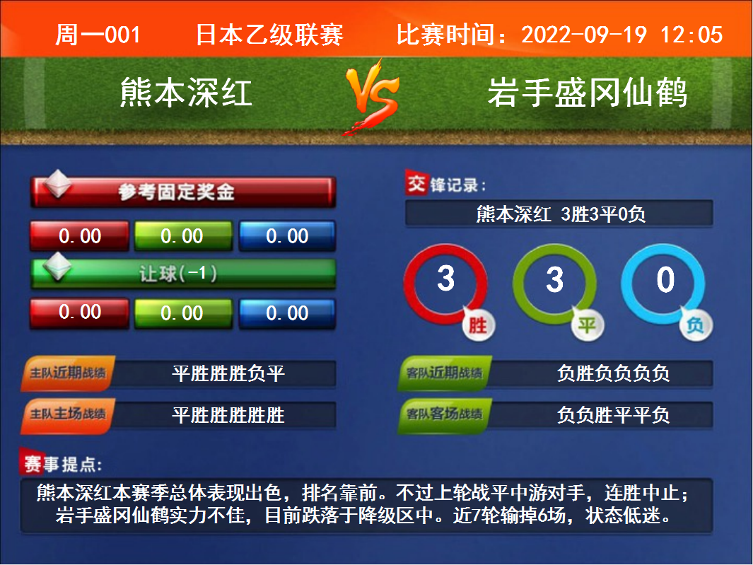 周一001  日本乙級聯(lián)賽 熊本深紅VS巖手盛岡仙鶴