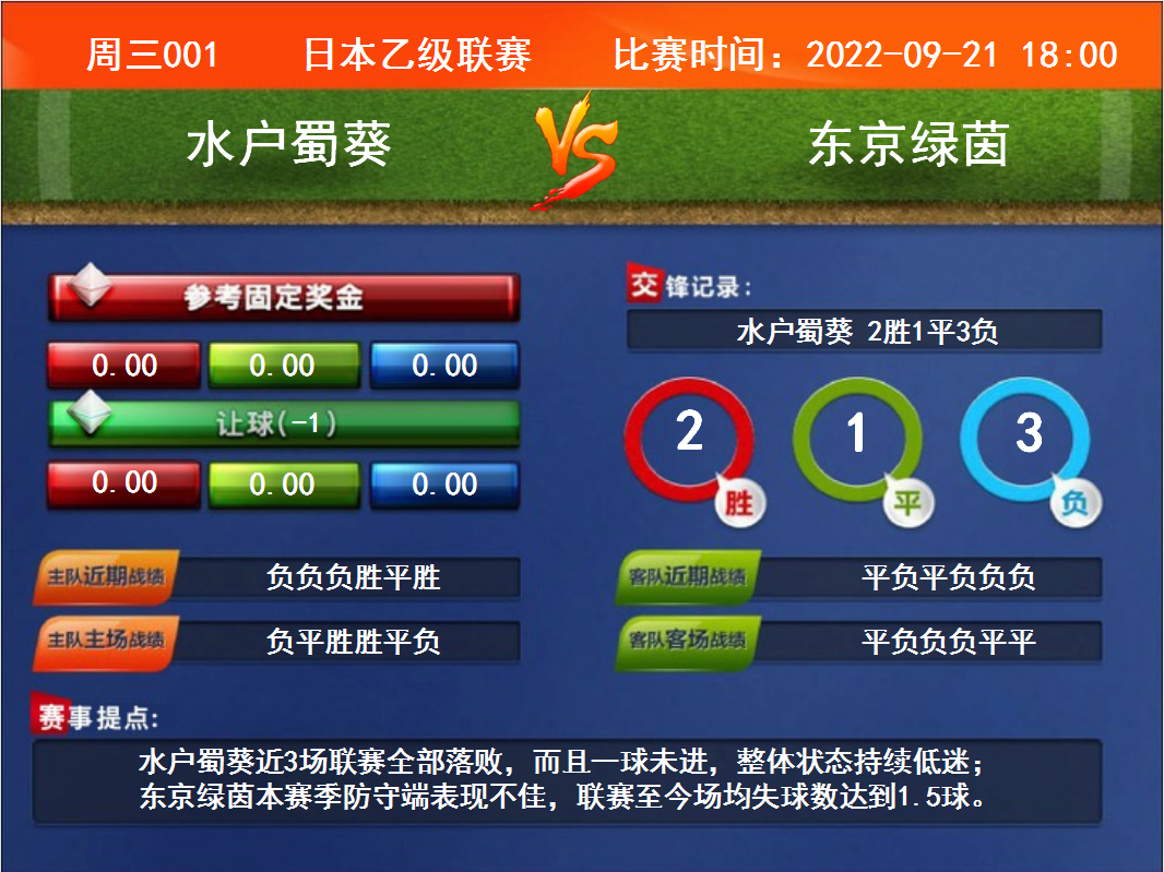 周三001 日本乙級聯(lián)賽 水戶蜀葵VS東京綠茵