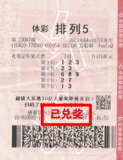 中獎當天,購彩者和往常一樣來到店里,對著店內(nèi)的歷史開獎號碼研究了一會兒,果斷選擇了定位復(fù)式進行投注。據(jù)悉,中獎?wù)邚埾壬ɑ┒嗄陙眇B(yǎng)成購買體育彩票小盤玩法排列型游戲的習(xí)慣,積累了豐富的購彩經(jīng)驗,對該玩法有自己獨到的分析方法和見解,善于利用定位復(fù)式進行購買,購彩多年,體育彩票排列型玩法給他帶來了多次中獎驚喜和美好的購彩體驗。23087期,在經(jīng)過自己的仔細分析和判斷后,張先生第一位選定123,第二位選定23,第三位選定689,第四位選定27,第五位選定13,組合成為一張144元的排列5定位復(fù)式票,巧妙運用自己獨特的選號技巧,幸運命中當期排列5一等獎。