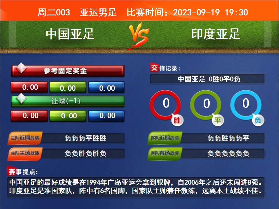周二003 亞運(yùn)男足 中國(guó)亞足VS印度亞足