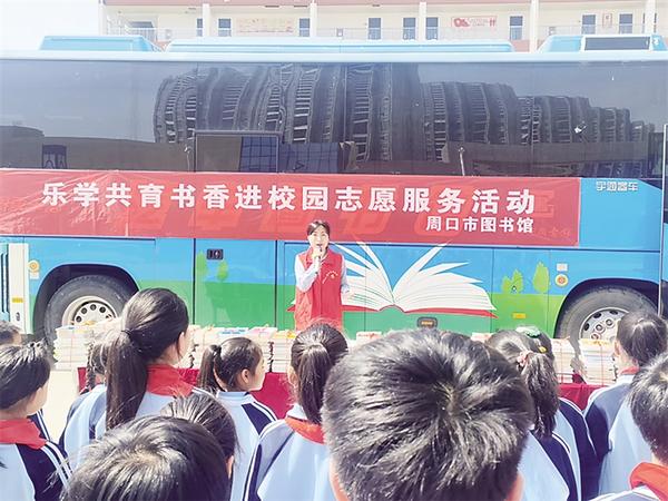 周口的鄉(xiāng)村里,也藏著對(duì)書的渴望。2016年我們買了第一輛流動(dòng)圖書車,3000多冊(cè)書裝在車上,像一座移動(dòng)的小圖書館。這些年,車轍印遍布各縣(市、區(qū))的鄉(xiāng)村學(xué)校、脫貧點(diǎn),2024年我們又在淮陽(yáng)區(qū)大連鄉(xiāng)中心小學(xué)等5個(gè)地方建了新的借閱點(diǎn),累計(jì)已有23個(gè)點(diǎn)。沈丘縣卞路口鄉(xiāng)大郭莊新希望留守兒童之家、商水縣舒莊鄉(xiāng)正弘希望小學(xué)等學(xué)校的孩子們,在家門口就能看到紅色故事、傳統(tǒng)文化、科普教育等書籍。同時(shí),我們精心挑選農(nóng)作物栽培種植、農(nóng)產(chǎn)品加工、養(yǎng)殖、手工藝品制作等各類圖書,并邀請(qǐng)相關(guān)專家為農(nóng)民開展信息咨詢服務(wù)。