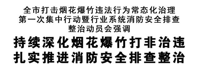 會議指出,安全重于泰山。各級各部門要準(zhǔn)確把握我市當(dāng)前煙花爆竹和消防安全的嚴(yán)峻形勢,深刻汲取事故慘痛教訓(xùn),時(shí)刻繃緊思想之弦,緊盯系統(tǒng)性風(fēng)險(xiǎn)和機(jī)制性問題,持續(xù)深化煙花爆竹打非工作,扎實(shí)推進(jìn)消防安全排查整治,最大限度防范遏制各類事故發(fā)生,全力保障人民群眾生命財(cái)產(chǎn)安全和社會大局穩(wěn)定。