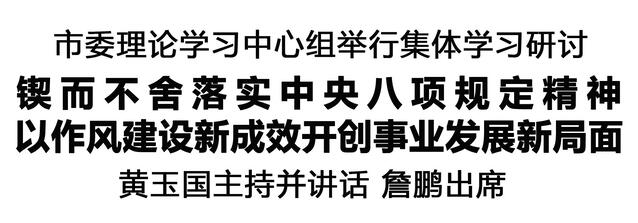 本報(bào)訊(記者 王艷) 1月16日,市委理論學(xué)習(xí)中心組舉行集體學(xué)習(xí)研討,深入學(xué)習(xí)貫徹習(xí)近平新時(shí)代中國(guó)特色社會(huì)主義思想,全面貫徹落實(shí)黨的二十屆四中全會(huì)精神,以打攻堅(jiān)戰(zhàn)、持久戰(zhàn)的決心和恒心,鍥而不舍落實(shí)中央八項(xiàng)規(guī)定精神,推進(jìn)作風(fēng)建設(shè)常態(tài)化長(zhǎng)效化,以?xún)?yōu)良作風(fēng)凝心聚力、真抓實(shí)干,為開(kāi)好民主生活會(huì)打牢思想基礎(chǔ)。市委書(shū)記黃玉國(guó)主持并講話。市長(zhǎng)詹鵬出席。
