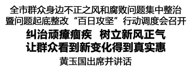 本報訊(記者 王艷 李瑞才)2月27日,全市群眾身邊不正之風(fēng)和腐敗問題集中整治暨問題起底整改“百日攻堅”行動調(diào)度會召開,認(rèn)真貫徹中央紀(jì)委國家監(jiān)委部署,落實全省群眾身邊不正之風(fēng)和腐敗問題集中整治總結(jié)暨2026年動員部署會議要求,調(diào)度“百日攻堅”行動,部署2026年工作,聚力攻堅、決戰(zhàn)決勝集中整治,不斷推動全面從嚴(yán)治黨向基層延伸,讓群眾看到新變化、得到真實惠。市委書記黃玉國出席并講話。