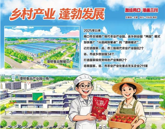 2025年以來,周口市統(tǒng)籌發(fā)展農產品初加工、精深加工和綜合利用加工,全域推廣現代農業(yè)產業(yè)園、返鄉(xiāng)創(chuàng)業(yè)園“兩園”模式,加快推廣“從田間到餐桌”的“澄明模式”,不斷提升鄉(xiāng)村產業(yè)發(fā)展質效,已打造國家、省、市三級現代農業(yè)產業(yè)園82個,省、市返鄉(xiāng)創(chuàng)業(yè)園34個,打造國家級優(yōu)勢特色產業(yè)集群2個,培育國家、省、市農業(yè)產業(yè)化重點龍頭企業(yè)211家。