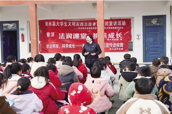 近日,大學(xué)生志愿者為商水縣胡吉鎮(zhèn)前劉小學(xué)的學(xué)生講解法律知識。來自商水縣新時代文明實踐服務(wù)中心、婦聯(lián)、司法局、檢察院的大學(xué)生志愿者宣講團(tuán),用案例講解、游戲互動的方式,為孩子們送上了一份涵蓋理想、安全、法治的成長“大禮包”。