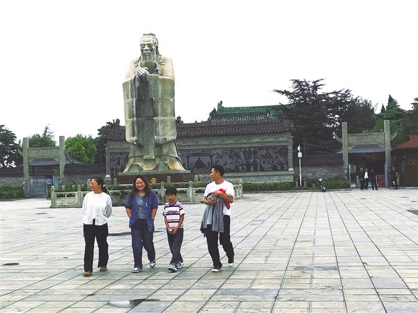 9月28日,游客從弦歌臺(tái)文化廣場(chǎng)走過。
