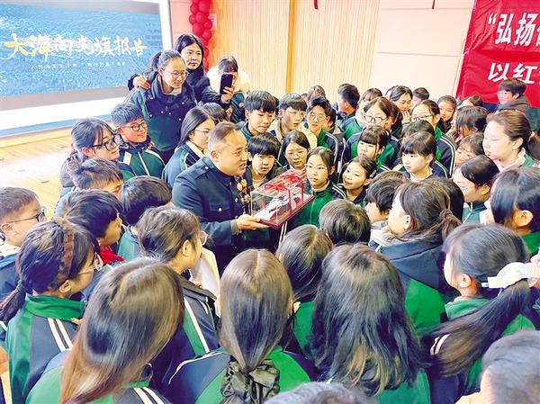 近日,退役軍人張千在商水縣第一高級中學(xué)的講臺上為學(xué)生講述人民海軍從無到有、由弱變強(qiáng)的壯闊征程。