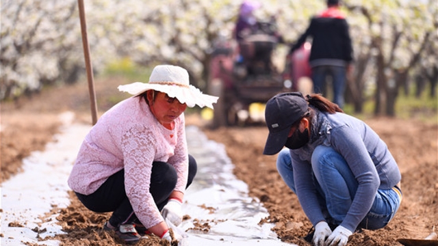 農(nóng)民們正在給玉米、冬小麥、棉花等農(nóng)作物開播、澆水、施肥,為秋季豐收做好布局