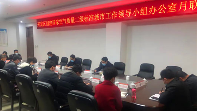 4月1日上午,開發(fā)區(qū)管委會副主任于杰主持召開創(chuàng)建國家空氣質(zhì)量二級標準城市工作領(lǐng)導小組辦公室月聯(lián)席會議,分析當前形勢,安排重點任務(wù)。
